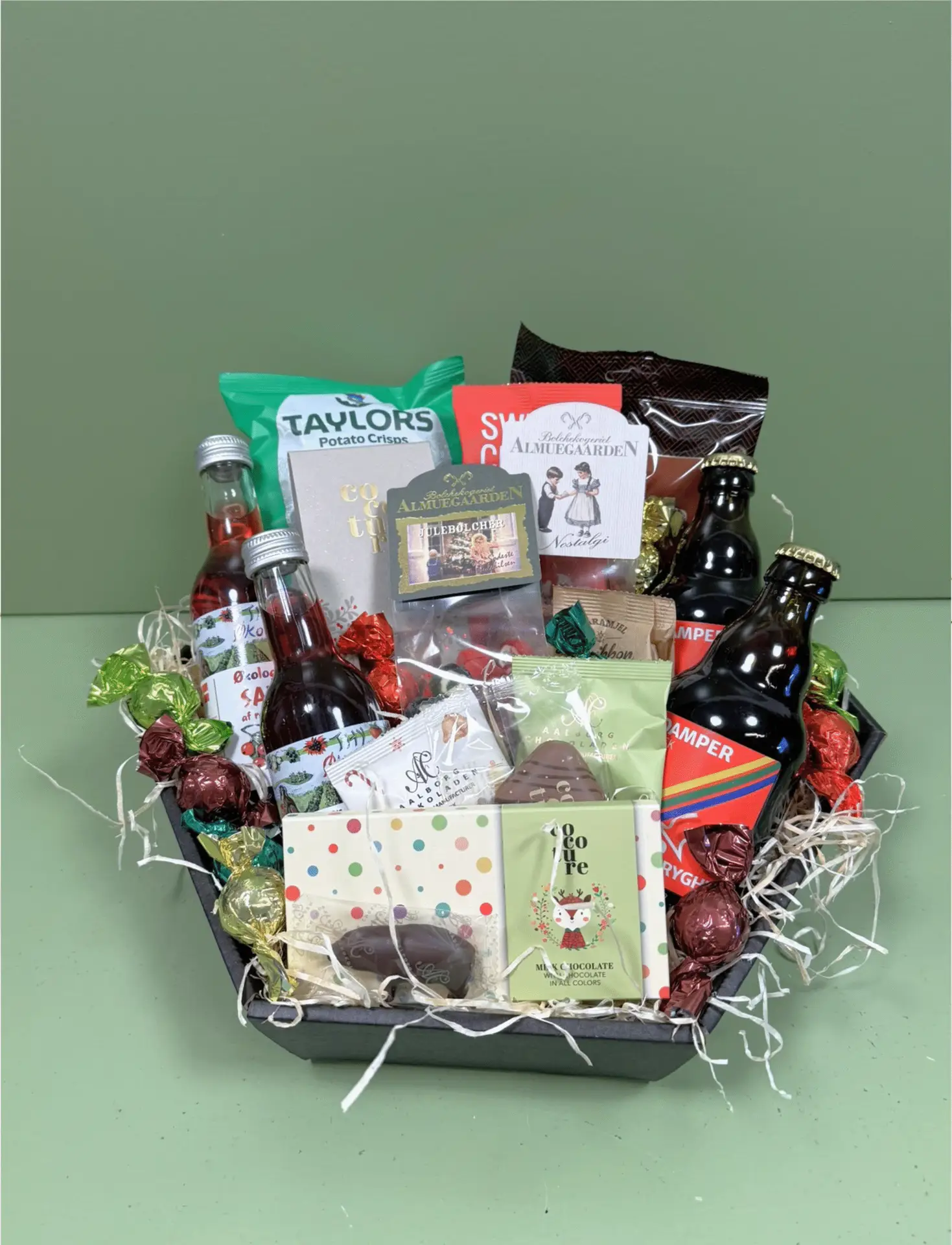 En Julekurv fra Blomstertorvet er altid en sikker vinder. Vi har specielt udvalgt et hav af chokolade, vine og andre lækkerier fra vores leverandører. Gavekurven bliver flot pakket ind i cellofan og leveret. Alk. 3,5%-9,5%